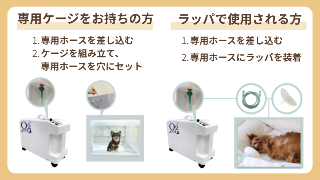 - 酸素の出力を確認したらペットをケージへ導く